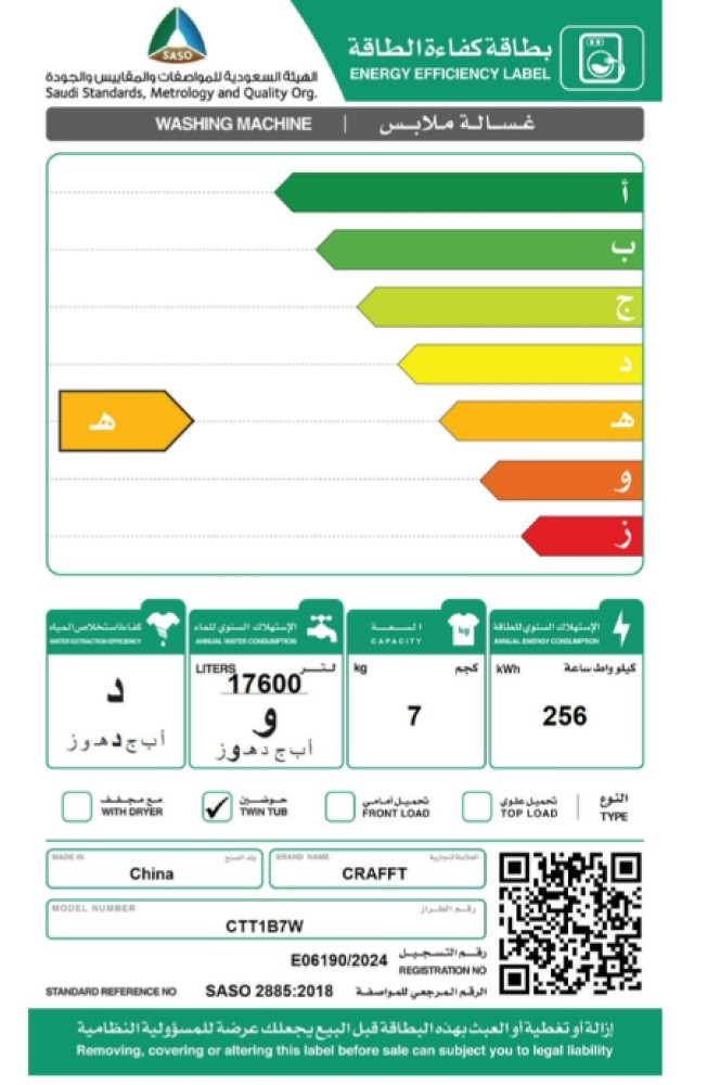سعة الغسيل : 7 كيلو