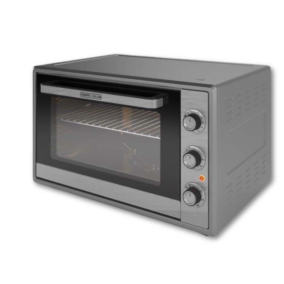 جنرال جولدن 6 وظائف: يتميز الفرن الكهربائي والشواية والمقلاة الهوائية بزجاج مزدوج بتصميم صغير يضمن سهولة الحمل والتخزين الأمثل. مزود بشعلات متعددة تمكنك من طهي أطباق مختلفة في وقت واحد، منظم حراري قابل للتعديل يسهل تعديل درجة الحرارة بسهولة. السعة: 60 لتر.