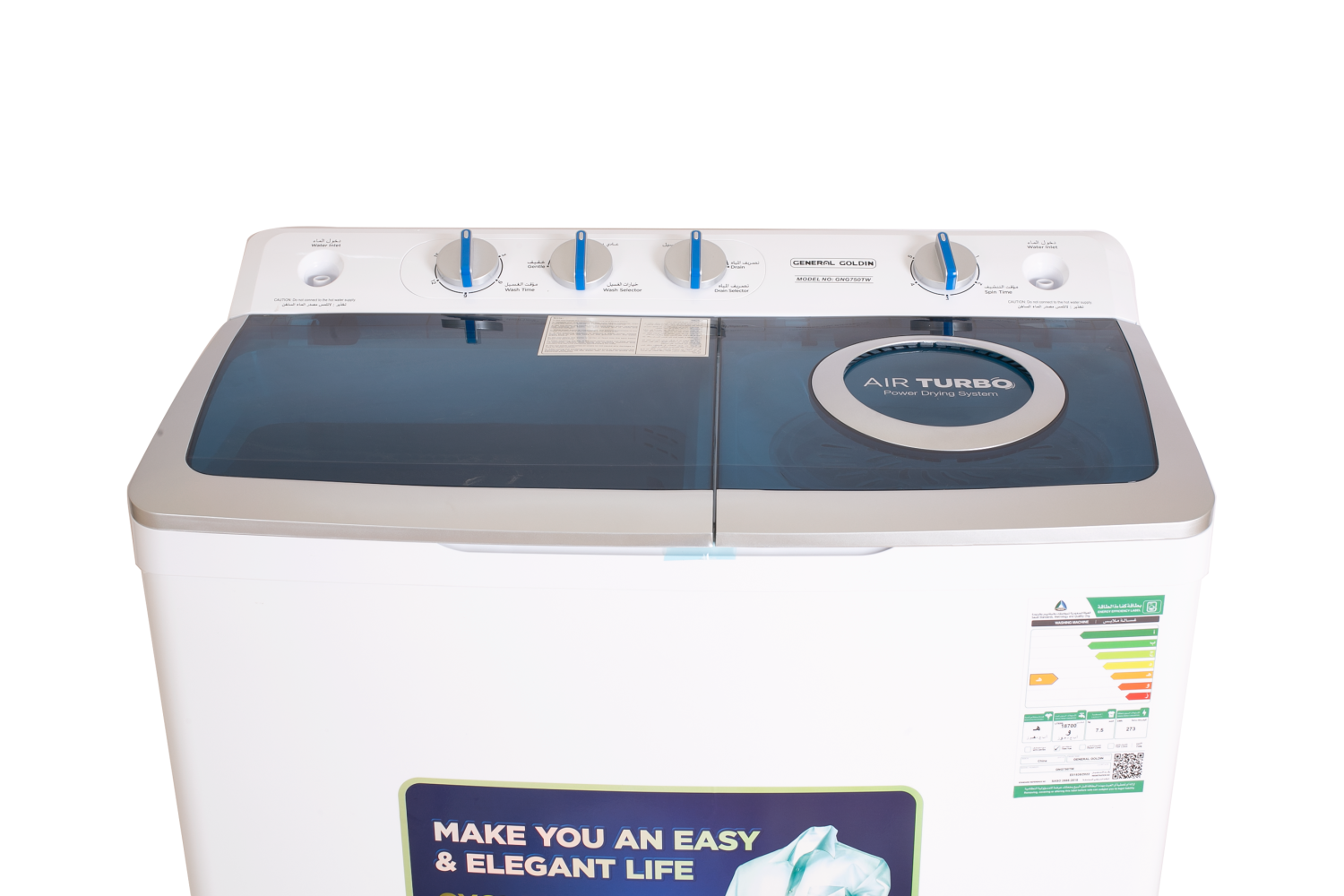 غسالة أنيقة ذات تصميم قابل للحمل سعة التحميل 7.5 كيلو سعة المجفف : 4 كجم برامج متعددة للغسيل مستوي صوت منخفض مفاتيح سهلة التحكم والاستخدام كفاءة عالية أداء مثالي طبقة الجسم مزدوجة من البلاستيك القوي تحافظ على الملابس اثناء الغسيل إستهلاك موفر للطاقة فلتر سحري قاعدة قوية