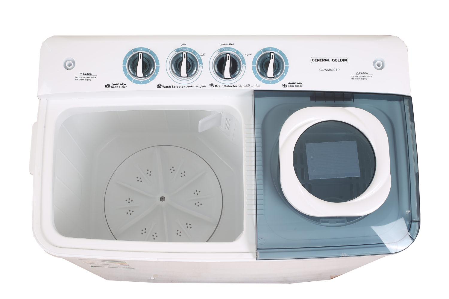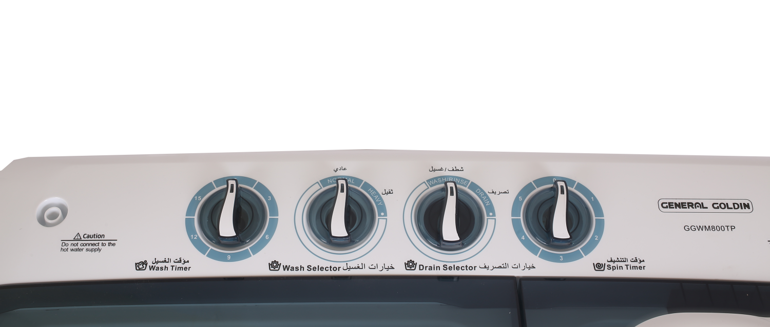 غسالة ملابس حوضين جنرال جولدن 8 كيلو_ أبيض/أسود مصنوعة من أجود الخامات الغير قابلة للصدأ او التآكل كما انها قادرة علي الحفاظ علي الالوان ثابتة دون بهتان كما انها تحتوي علي حوض داخلي من البلاستيك المقوي و كذلك ملحقات من الاستانلس ستيل المقاومة للصدأ .