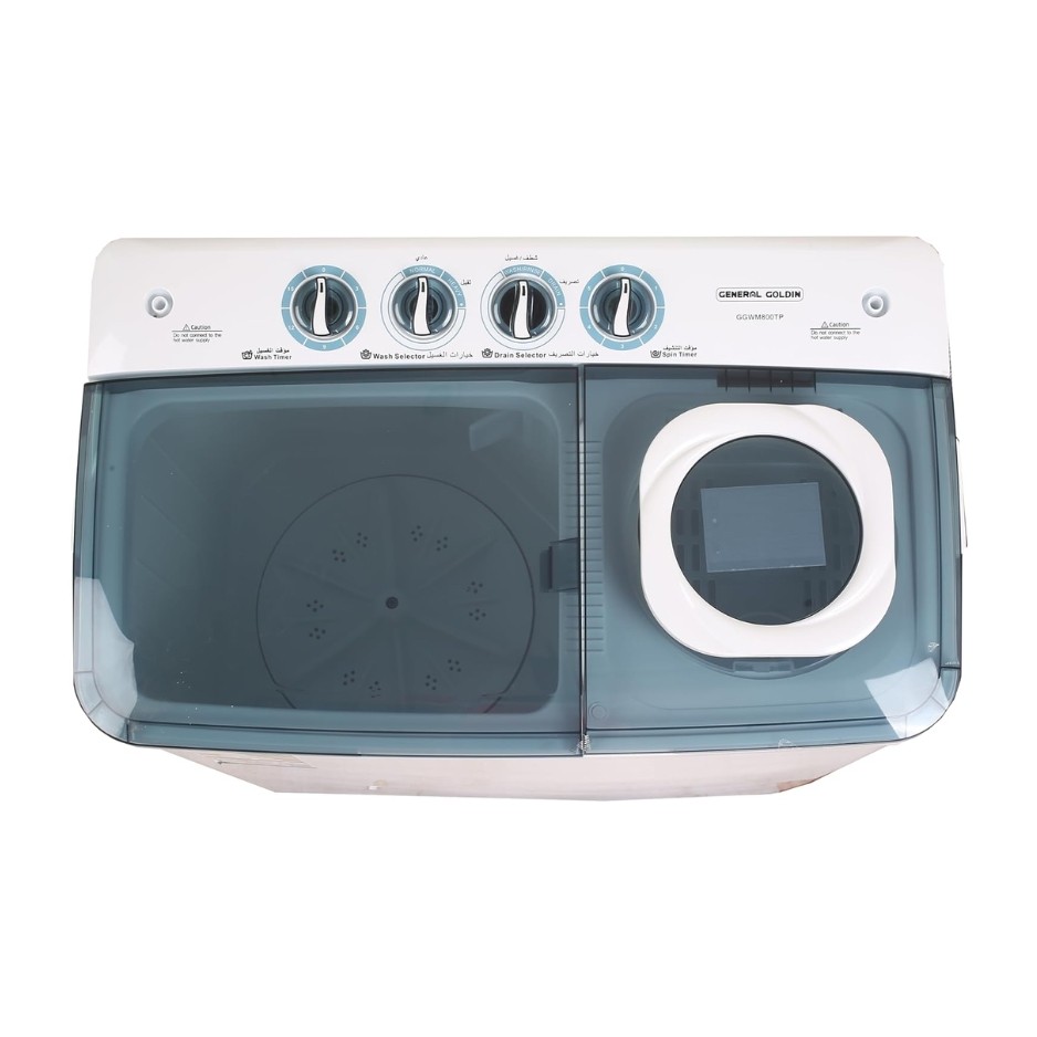 غسالة بحوضين من جنرال جولدن موديل GNG10TW، مصنوعة من مادة عالية الجودة. تضمن تنظيفاً قوياً ولكن لطيفاً. غسالة أنيقة بتصميم قابل للنقل مزودة بميزات ذكية ومريحة تلبي متطلباتك لغسل الملابس. تحمي لون الغسيل وملمسه. حافظ على ملابسك نظيفة وخالية من البقع مهما كانت شدة الأوساخ. تزيل جميع البقع وتمنحك ملابس نظيفة برائحة منعشة. تحمي نسيج وملمس الغسيل. تخترق الأقمشة بسرعة وتزيل الأوساخ بسهولة. سعة 10 كغم تتيح لك غسل أكوام من الغسيل في دورة واحدة ويمكنك وضع أشياء كبيرة للغاية.