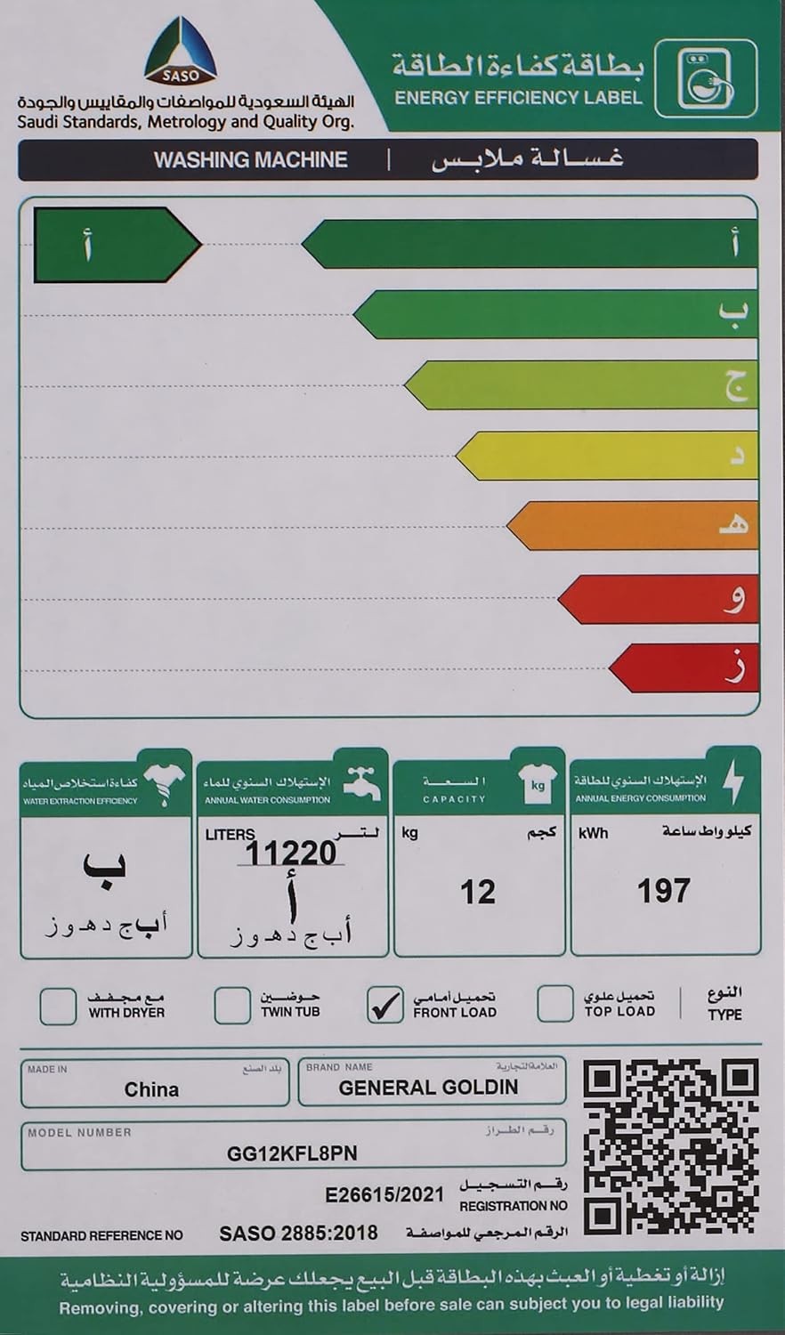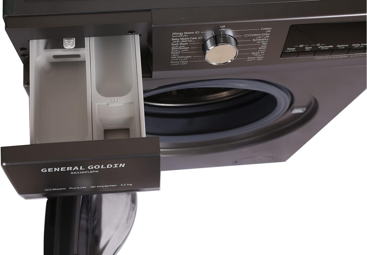 غسالة تحميل أمامي بيضاء مصنوعة من مواد معدنية عالية الجودة من جينرال جولدنغ GG12KTL8NP تضمن تنظيفًا قويًا ولطيفًا. تحافظ على لون وملمس غسيلك. حافظ على ملابسك نظيفة وخالية من البقع مهما كانت شدة الأوساخ. تزيل جميع البقع وتمنحك ملابس نظيفة برائحة منعشة. تحمي نسيج وملمس الغسيل. تتغلغل سريعاً بالأقمشة وتزيل الأوساخ بسهولة. سعة كبيرة تصل إلى 12 كغم تسمح لك بغسل أكوام من الغسيل في دفعة واحدة كما يمكنك غسل قطع الملابس كبيرة الحجم.
