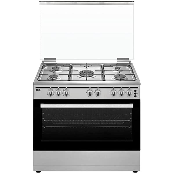 فرن غاز هاس مقاس 60×90 سم, عدد 5 عين , أمان كامل, إشعال ذاتي, استيل- HC960T