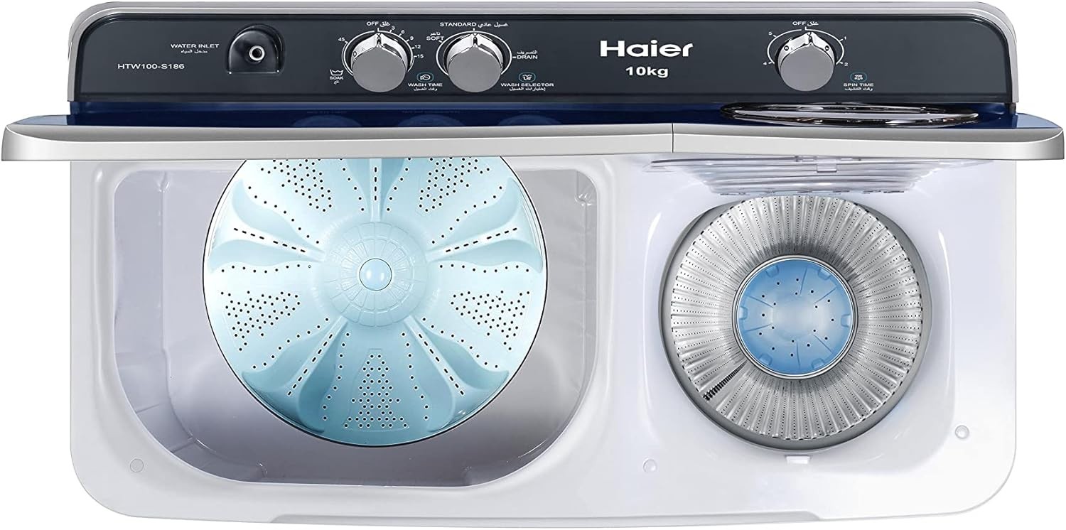 غسالة حوضين من هاير HTW100-S186، 2 برنامج للتجفيف بالهواء بتصميم فاخر، مزودة بخاصية النابض المتقدمة للغاية، تدفق ماء قوي لإعطاء ضربات قوية على الملابس لضمان جودة أفضل للغسيل ومنع تكاثر البكتيريا. الأغطية الشفافة خفيفة الوزن ومصممة لتسهيل الإغلاق السلس والبطيء من خلال منع السقوط المفاجئ يأتي المدخل مع نافذة مضادة للصدمات وحماية للغطاء لضمان تحقيق سلامة المستخدم المرغوب فيه أثناء عملية الغسيل. مجهزة بغطاء شبكي مضاد للفئران في القاعدة لمنع دخول الفئران، ومصممة خصيصًا لمنع دخول الحشرات يحمي هذا الهيكل الواقي الغسالة من التلف. لغسلة نظيفة وصحية في كل مرة مع فلتر سحري 4D مدمج، مصمم خصيصًا لتحسين جمع الوبر. مما يساعد على التخلص من بقايا المنظفات/الأوساخ بكفاءة من أجل التنظيف العميق والعناية الإضافية بالأقمشة. مزودة بحامل غسالة بعجلات يمكن قفلها ضعي السلال المرتّبة تحتها. كما يسهل سحبها للتنظيف والإصلاح. السعة: 10 كغم. اللون: أبيض.