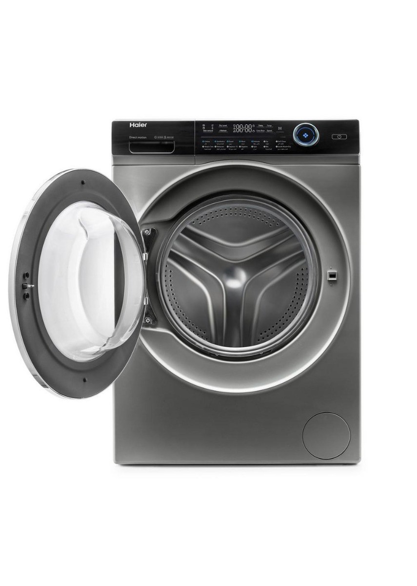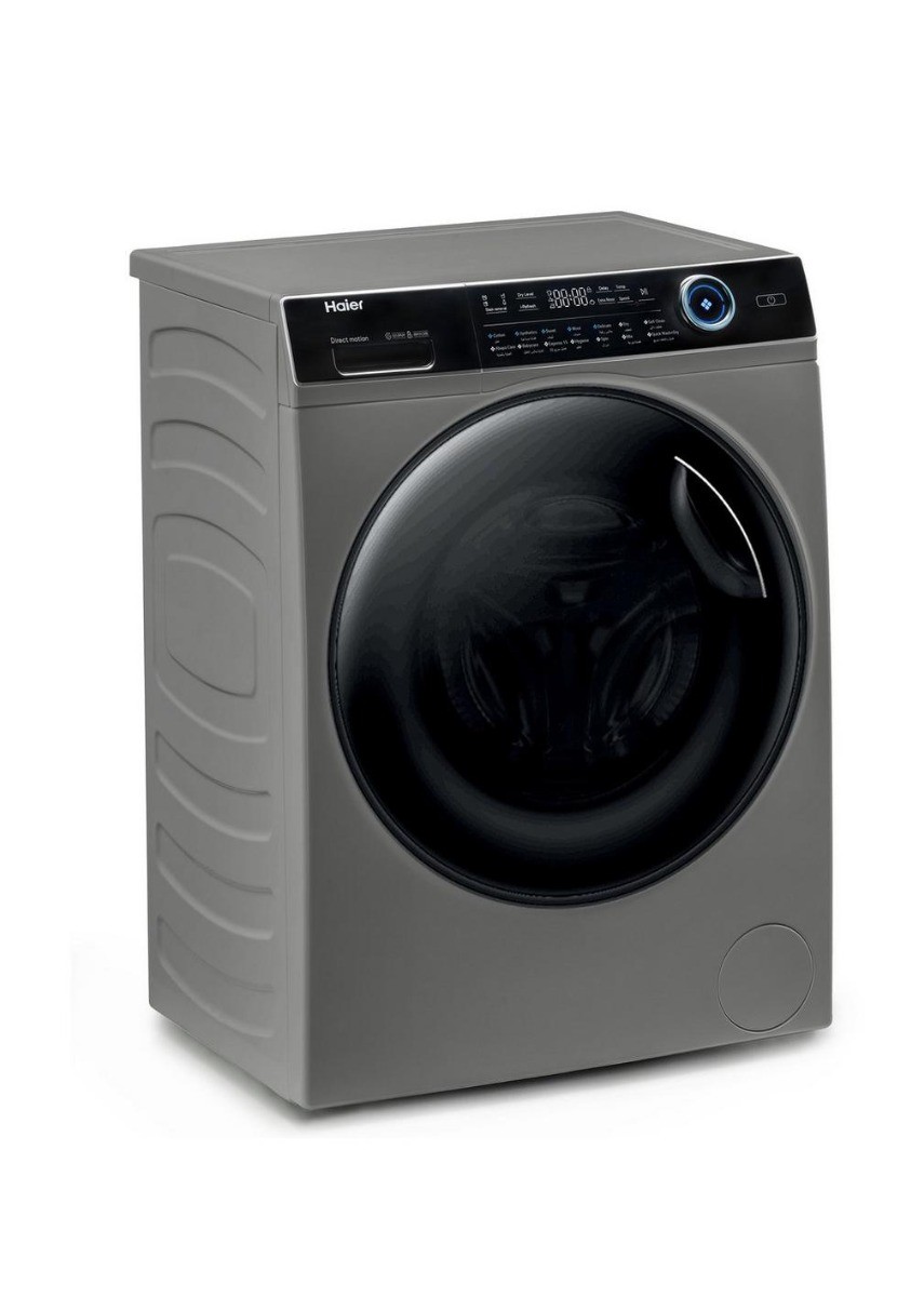 هاير غسالة ملابس اتوماتيك تعبئة امامية 12 كجم, تجفيف 100% 8 كجم, موتور دايركت درايف, فضي/اسود - HWD120-B14979S8