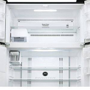 مروحة تبريد مزدوجة: إنه يتيح التبريد المستقل لحجرات الفريزر والثلاجة، وهو أمر لا يمكن لمروحة واحدة القيام به. وباستخدام مروحتين، تعمل أيضًا على تدوير الهواء البارد الذي يوفره التشغيل القوي للعاكـس بسرعة وفعالية.