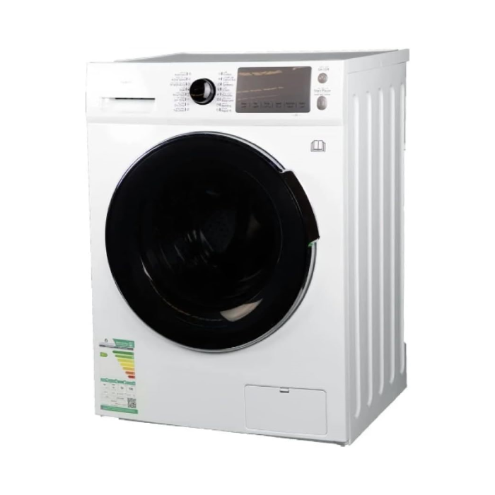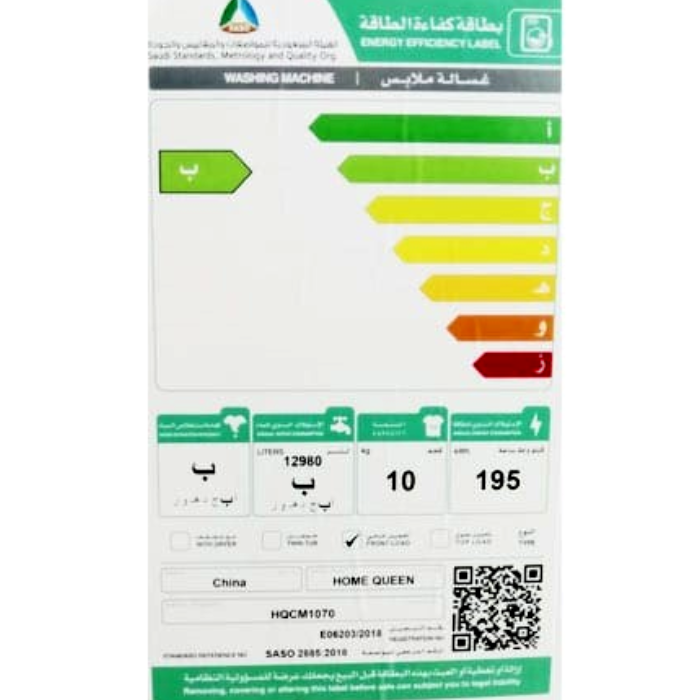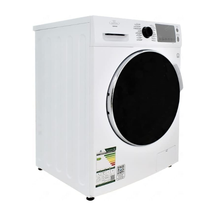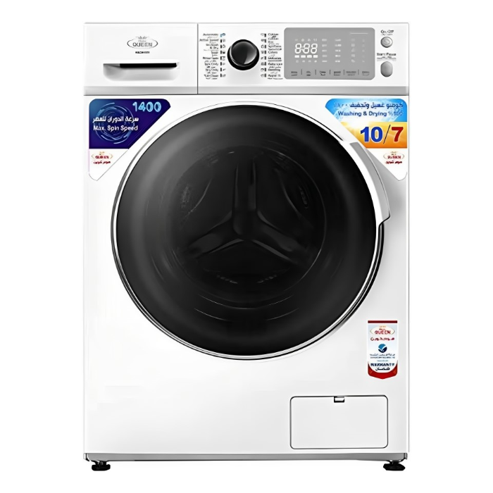 هوم كوين غسالة منزلية أتوماتيك تعبئة أمامية، 10 كجم، تنشيف 100%، أبيض - HQCM1070