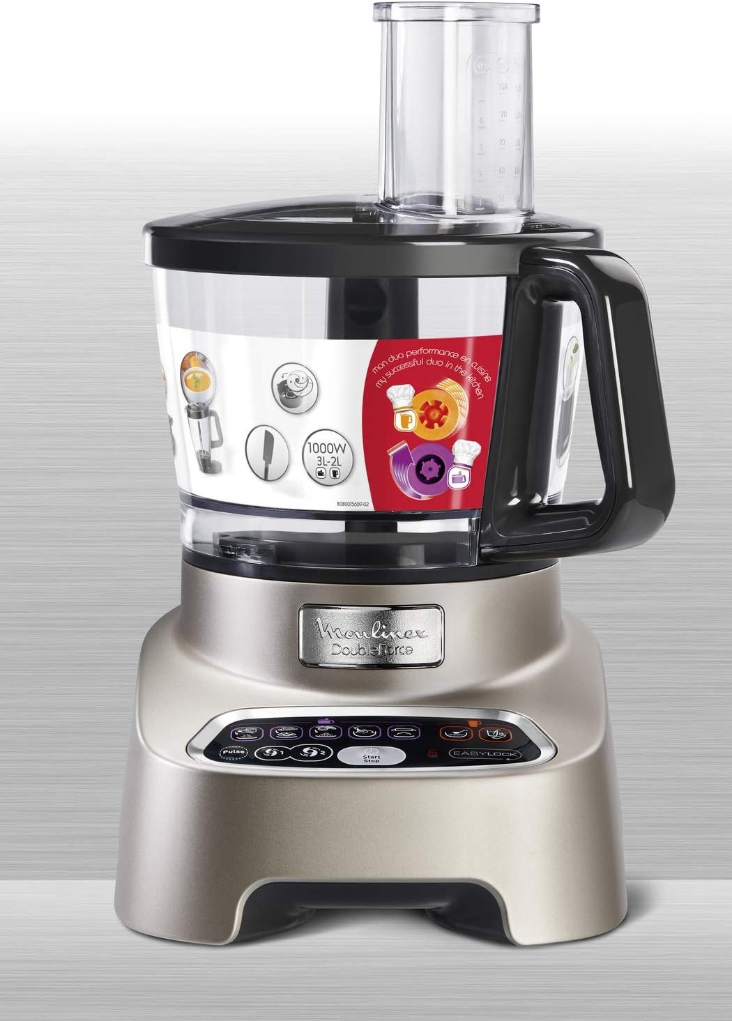 يوفر لك محضر الطعام مولينكس القوة والسرعة بشكل لا يصدق، ويعود الفضل في ذلك الى محرك القوة المضاعفة Double Force Motor، الذي يعمل بكفاءة عالية في جميع الظروف والحالات. يعمل محضر الطعام هذا بواسطة محرك فعال بقوة 1000 واط، والذي يوفر لك سرعة وقوة مخصصة اعتمادا على الملحق الذي تم ارفاقه بالجهاز. سيكون لديك سبعة من خيارات السرعة المبرمجة بشكل مسبق، والتي توفر لك النتائج المرجوة. وايضا، يمتلك هذا الجهاز 10 من الملحقات الاضافية، التي تؤدي 31 وظيفة مختلفة.