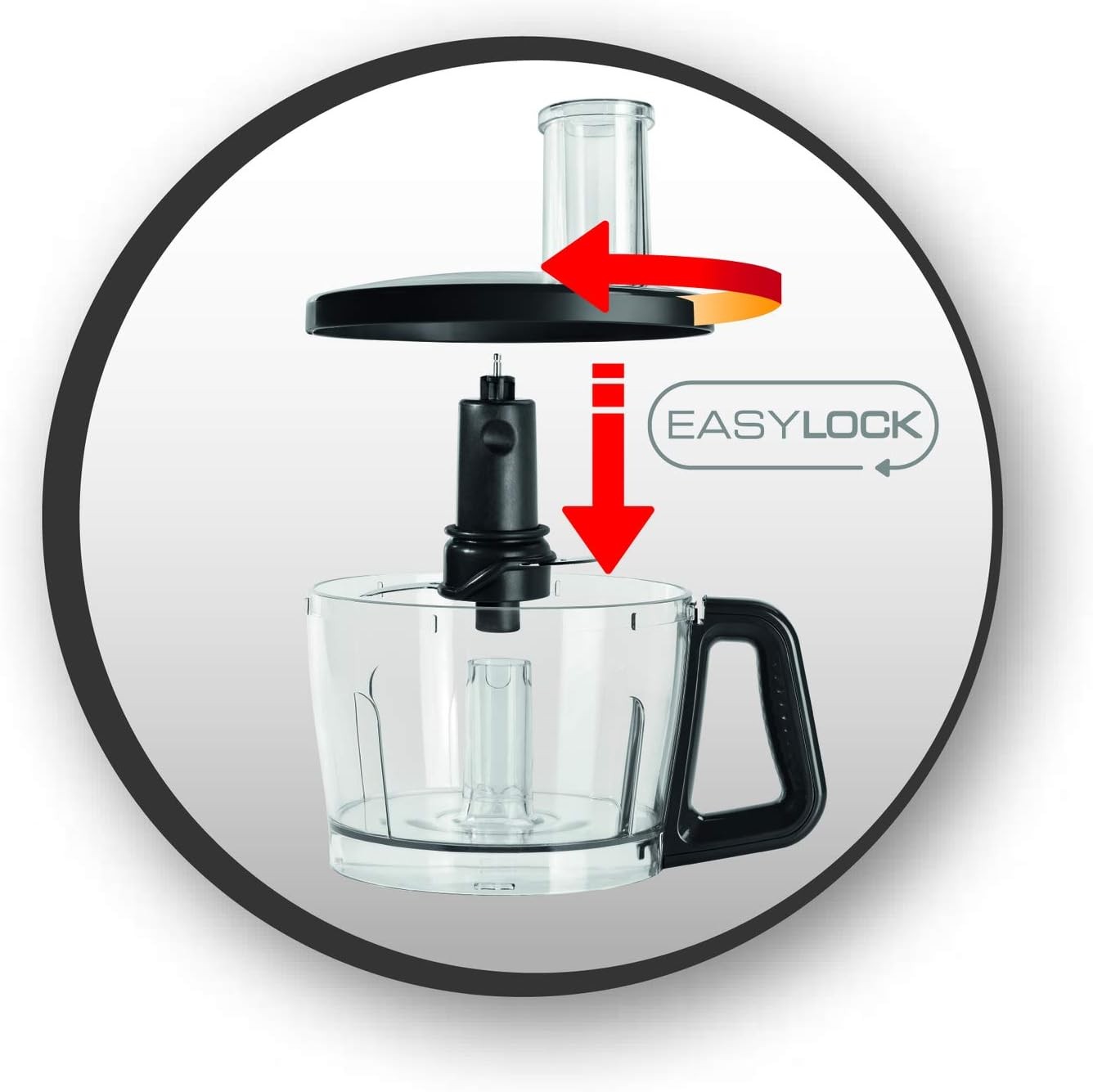 لا داعي للقلق حيال تلك الفوضى التي قد تحدث في مطبخك عند استخدام محضر الطعام مولينكس ذو القوة المضاعفة. فقط قم بوضع الغطاء على الجزء العلوي من الوعاء، وقم بتدويره مع اتجاه عقارب الساعة لمنع تسرب الطعام.