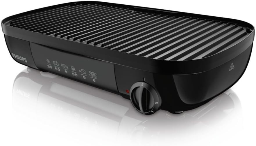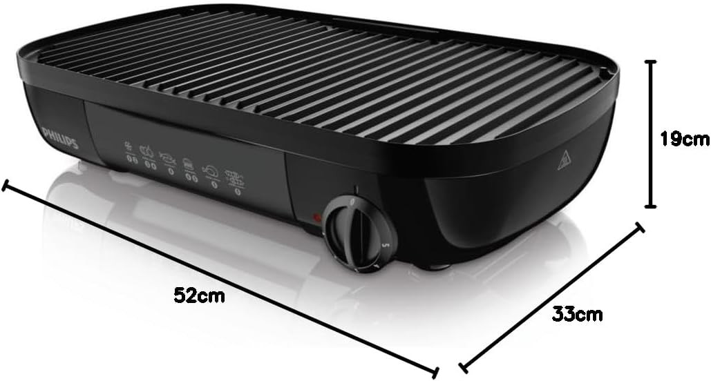 تتميز الشواية بمنظم حراري قابل للتعديل، يسمح لك باختيار درجة الحرارة وفقا لرغباتك، بحيث تعطيك نتائجا مذهلة. تاتي الشواية مع صفيحتين باسطح مضلعة، من اجل شواء سلس. افضل مافي الامر، هو انها مزودة بصفيحة غير لاصقة، مما يعني انك لن تحتاج لاي زيت تقريبا حتى تقوم بعملية شواء اللحم، ولكنها في ذات الوقت ستطهو اللحم بشكل كامل. يمكنك ايضا ان تصفي وتتخلص من الدهون الزائدة، وذلك لان الشواية تتمتع بسطح مائل يضمن لك الحصول على طعام صحي وشهي في ان واحد. وقد تم تجهيز هذه الشواية بمحرك 1500 واط، والذي يضمن لك تسخينا وشواء ذات سرعة فائقة. كما تتميز شواية فيليبس بلوح داخلي لتجميع الشحوم، حتى يجمع الدهون الزائدة ويضمن لك الكمية المناسبة من البروتين.
