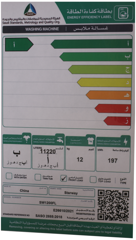 ستار واي غسالة أوتوماتيكية بفتحة أمامية هي غسالة متوسطة المدى. سعة 12 كغم، وهي مناسبة لعائلة كبيرة. تتميز بتصميم تحميل أمامي، وهو أكثر كفاءة في استخدام الطاقة من الغسالات ذات التحميل العلوي. كما أنها تحتوي على عدد من الميزات التي تجعله سهل الاستخدام، مثل لوحة التحكم الرقمية وقفل الأطفال.