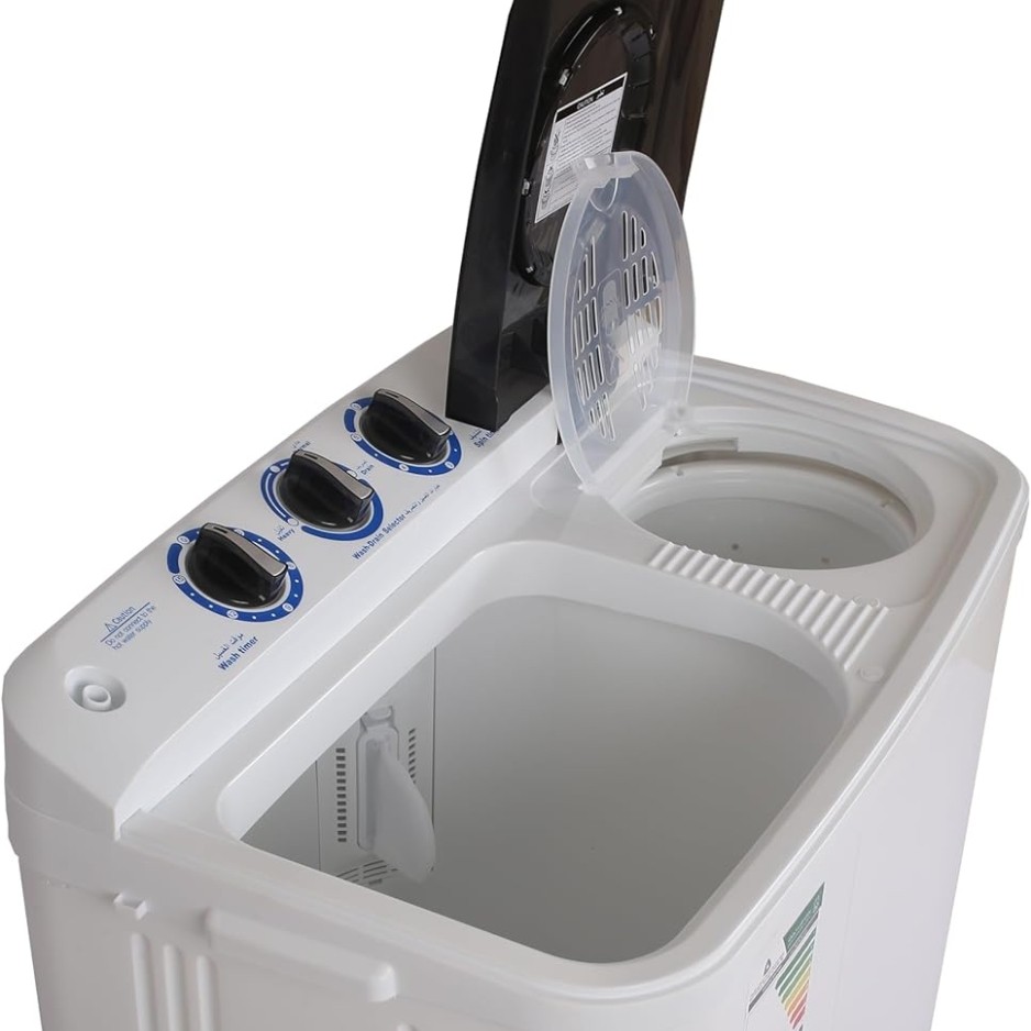 غسالة بحوضين من ستار واي تعد غسالة بسيطة مثالية للمساحات الصغيرة. تتميز بسعة 8 كيلوجرام، وهو ما يكفي لغسل ملابس 2-3 أشخاص. تحتوي على حوضين، أحدهما يستخدم للغسيل والآخر للتجفيف، حتى تتمكن من غسل وتجفيف ملابسك في غسالة واحدة. تتسم بكفاءة عالية أثناء التشغيل واستهلاك اقتصادي للطاقة.