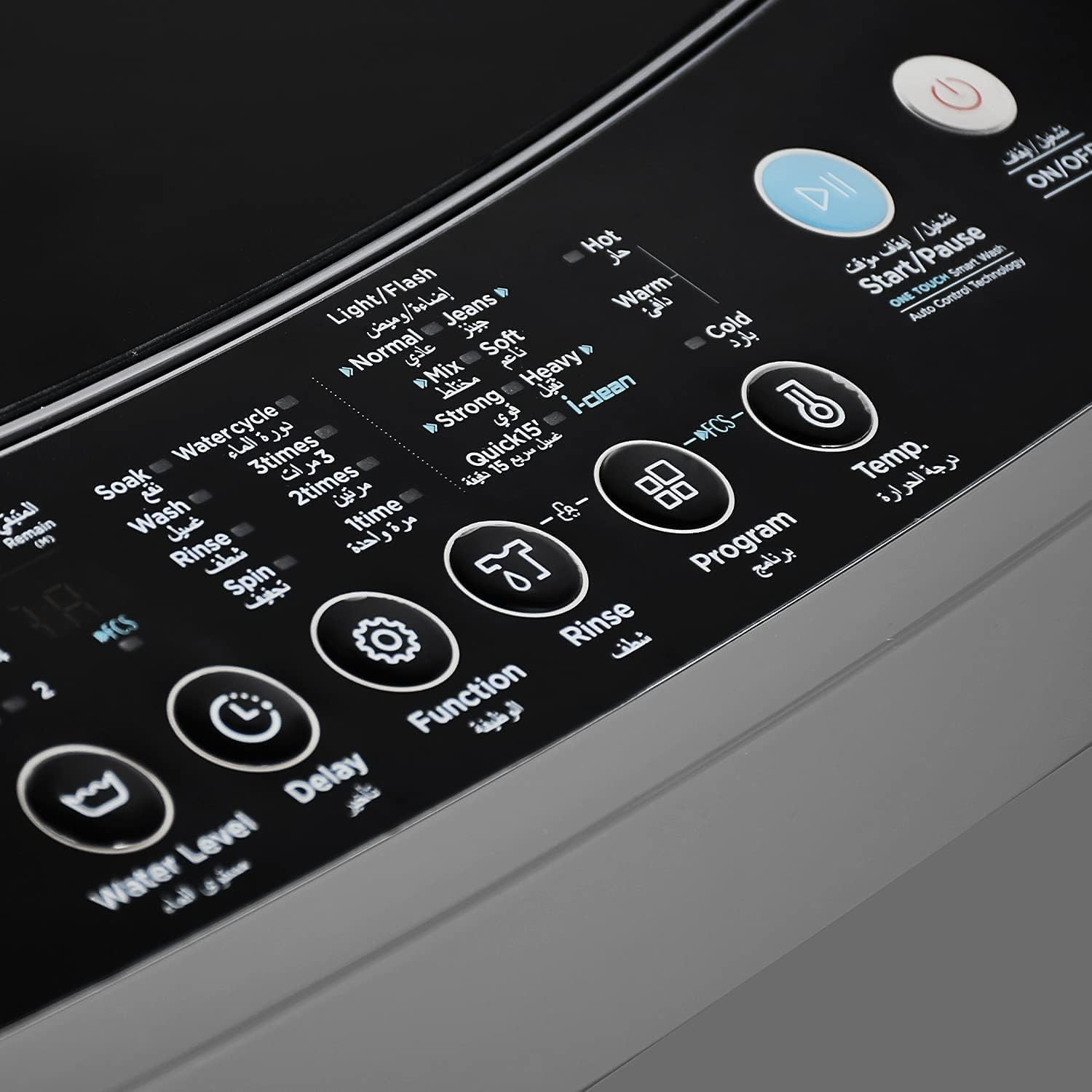 غسالة تحميل علوي بسعة 7 كغم، بـ8 برامج، بفتحة مزدوجة، بغطاء بلاستيكي متين، بمضخة تصريف، وبوظيفة قفل أمان الأطفال. المواصفات: إجمالي السعة (كغم): 7. التحكم / البرامج: 8. سرعة الدوران (لفة في الدقيقة) / شاشة رقمية: 680 لفة في الدقيقة/ LED. الجهد (فولت، هرتز): 220-240 فولت / 50 هرتز.