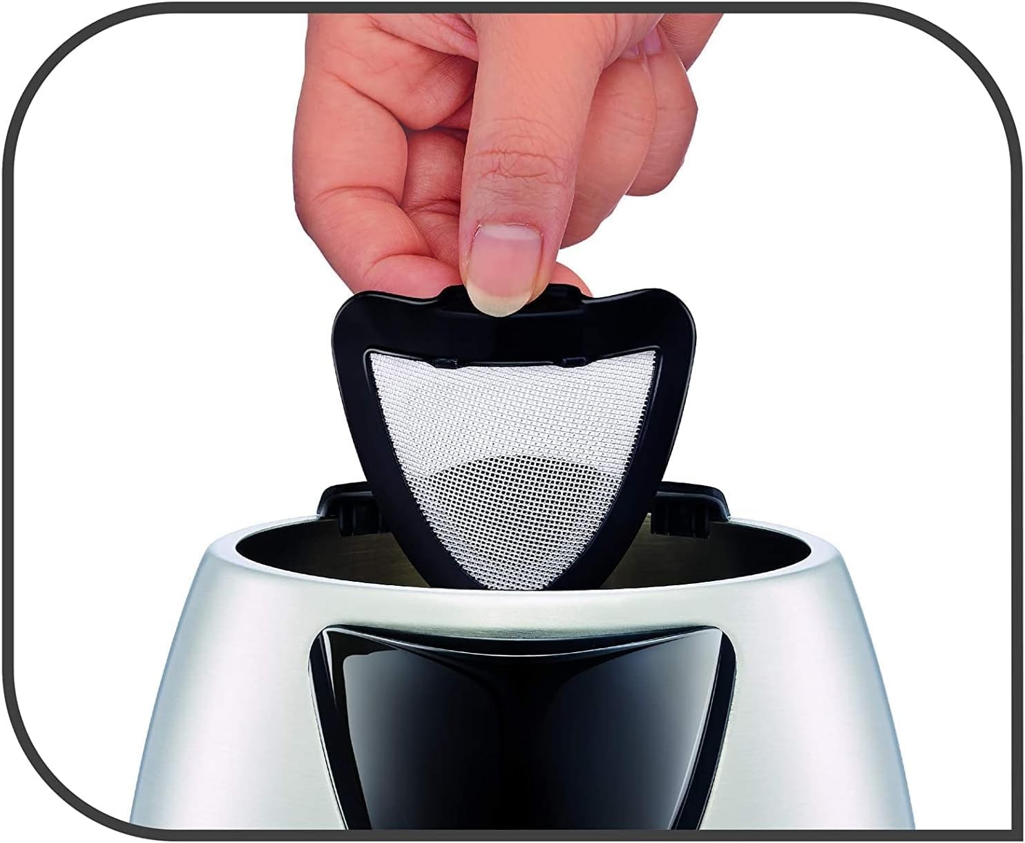 1.7 لتر من الماء: مثل هذه السعة ستسعد جميع أفراد الأسرة، غلاية بهيكل من الستانلس ستيل، عنصر تسخين خفي حتى لا يكون على اتصال مباشر بالماء.