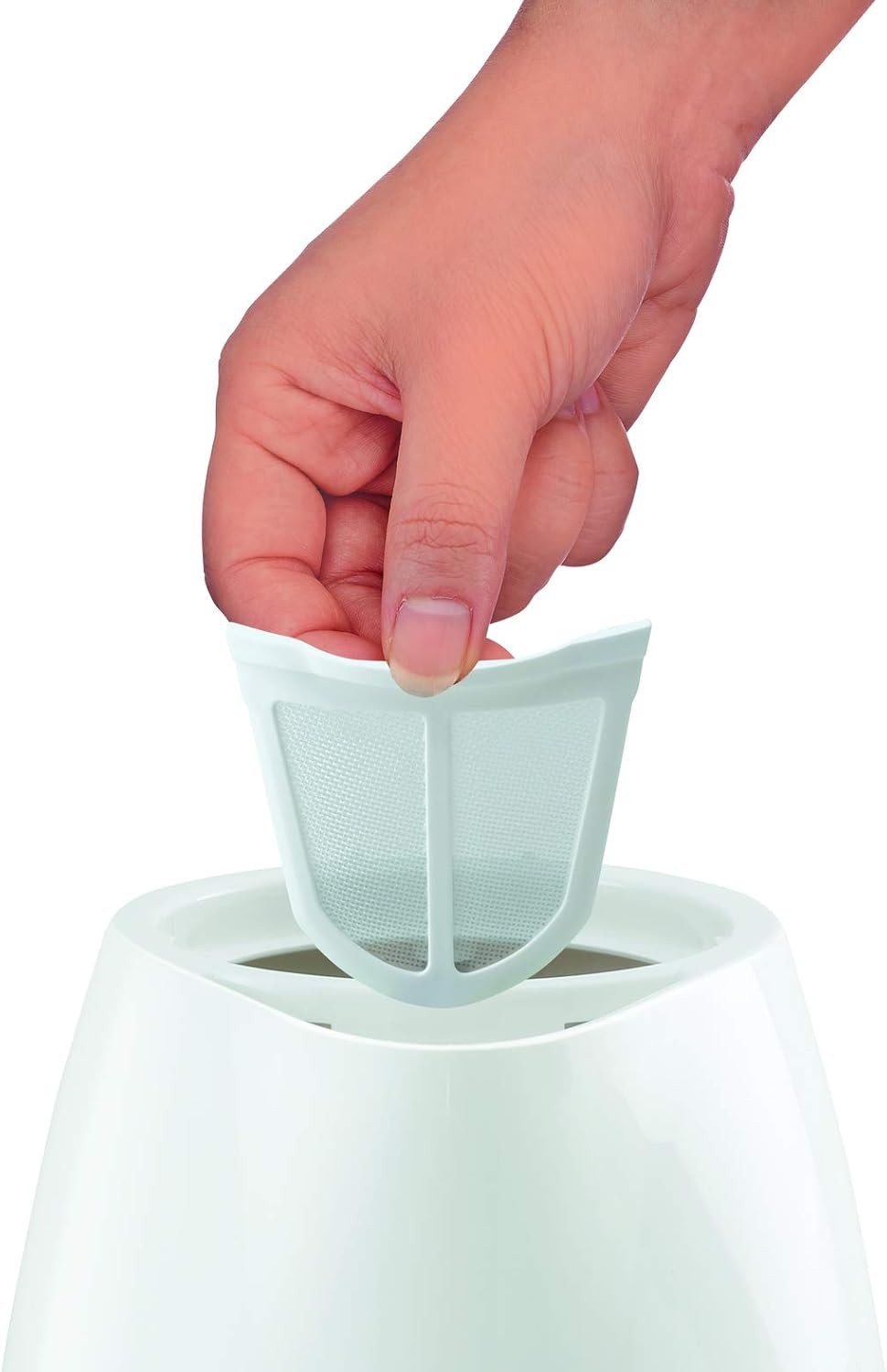 - للحفاظ على غلايتك نظيفة ونقية وخالية من الترسبات الكلسية، إنها تمتلك فلتر قابل للإزالة والغسل، يمكنك ببساطة قلبه وشطفه جيداً وإعادة إدخاله. لكوب لذيذ بكل مرة