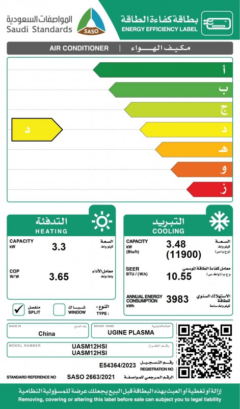 | 11,900 وحدة | سعة التبريد | القدرة |